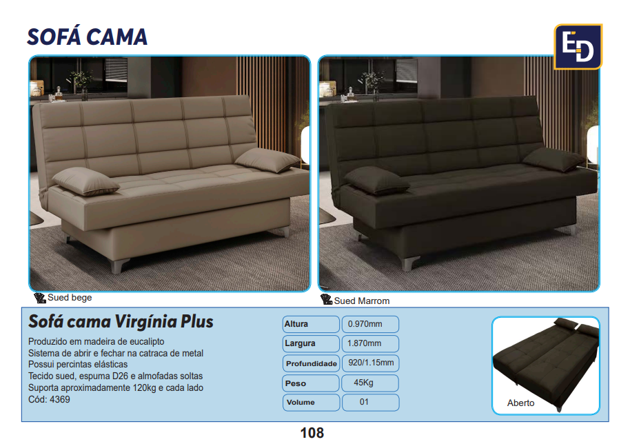 Espuma: 100% Poliuretana – assento D-26 e Encosto D 26